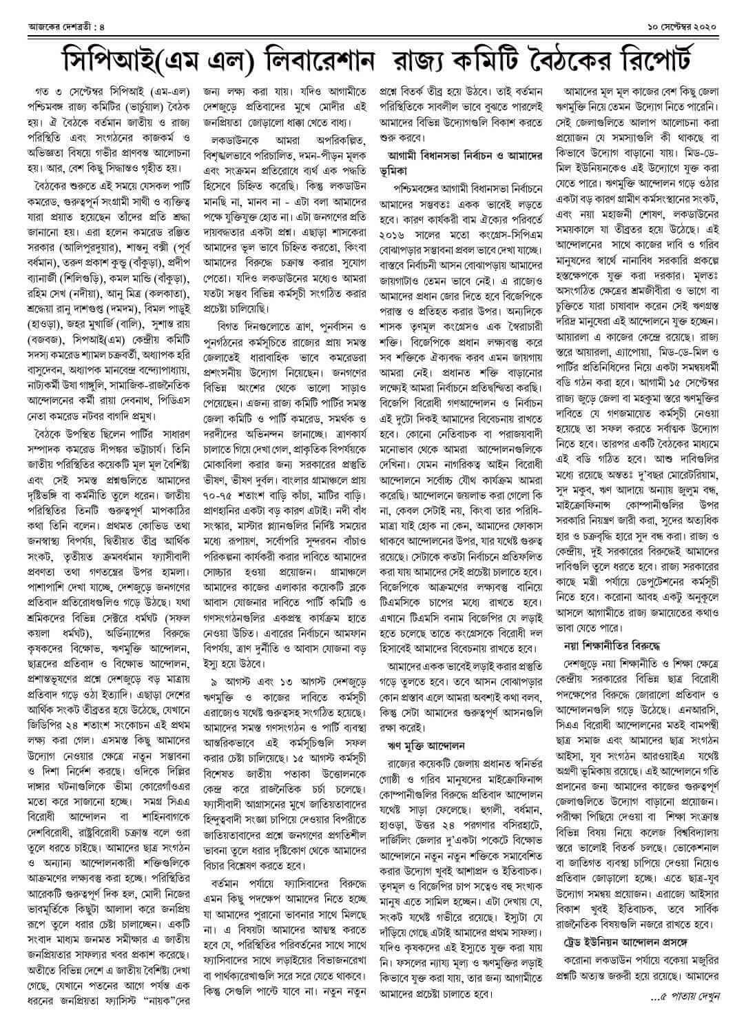 ১০ সেপ্টেম্বর ২০২০ সংখ্যা দেশব্রতী পৃ-৪