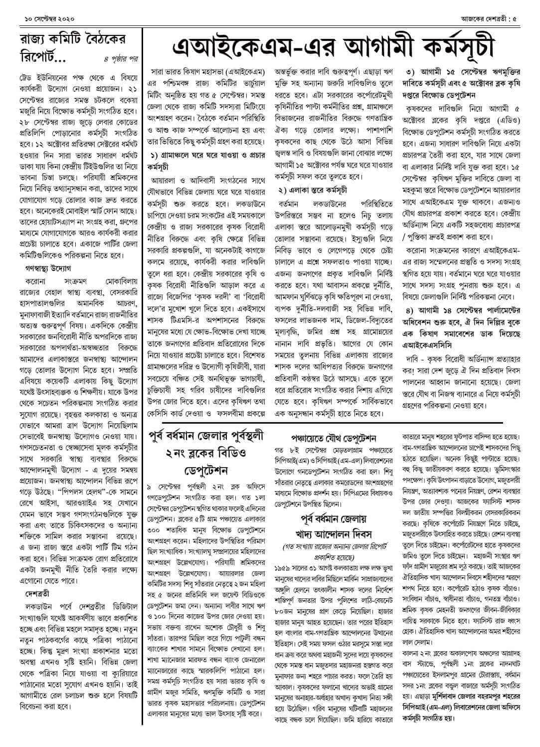 ১০ সেপ্টেম্বর ২০২০ সংখ্যা দেশব্রতী পৃ-৫