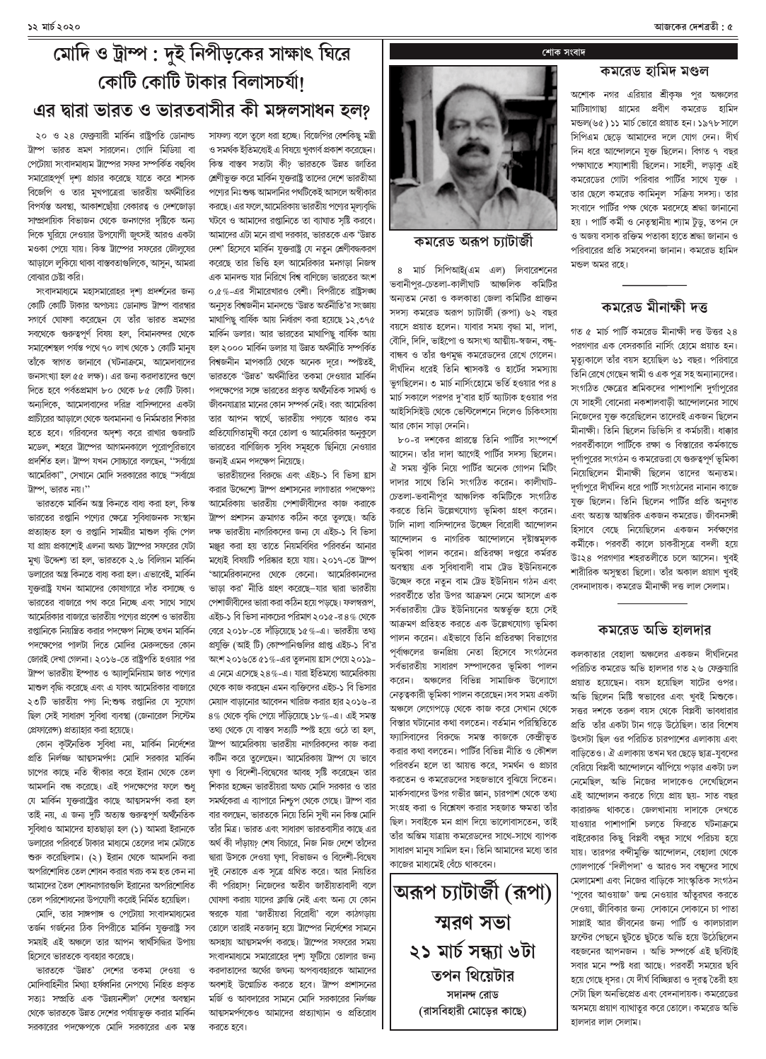 ১২ মার্চ ২০২০ সংখ্যা দেশব্রতী পৃ-৫