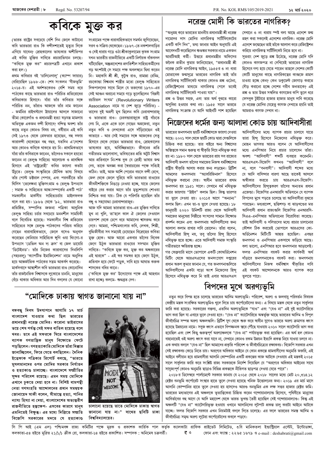 ১২ মার্চ ২০২০ সংখ্যা দেশব্রতী পৃ-৮