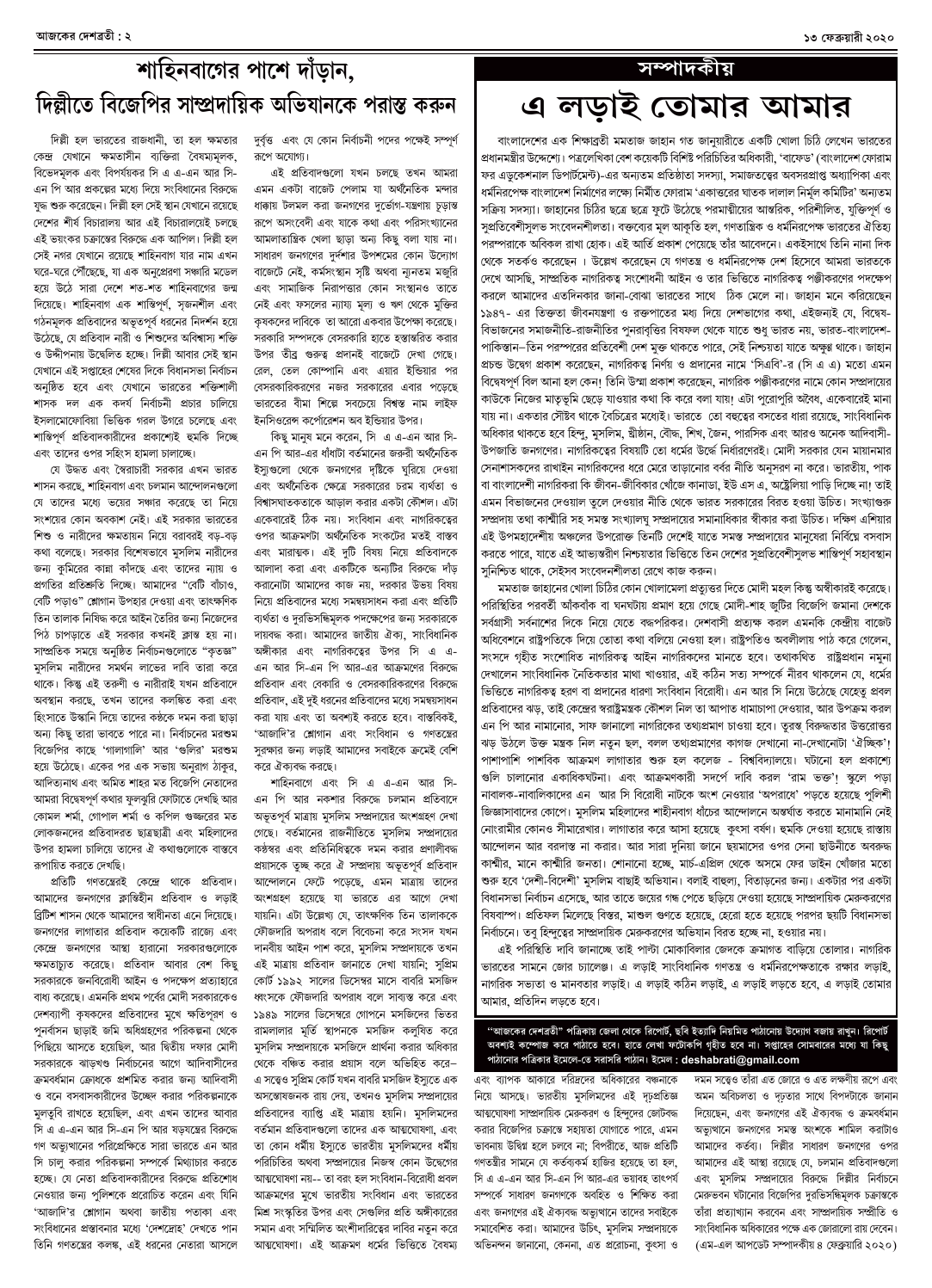 ১৩ ফেব্রুয়ারী ২০২০ সংখ্যা দেশব্রতী পৃ-২