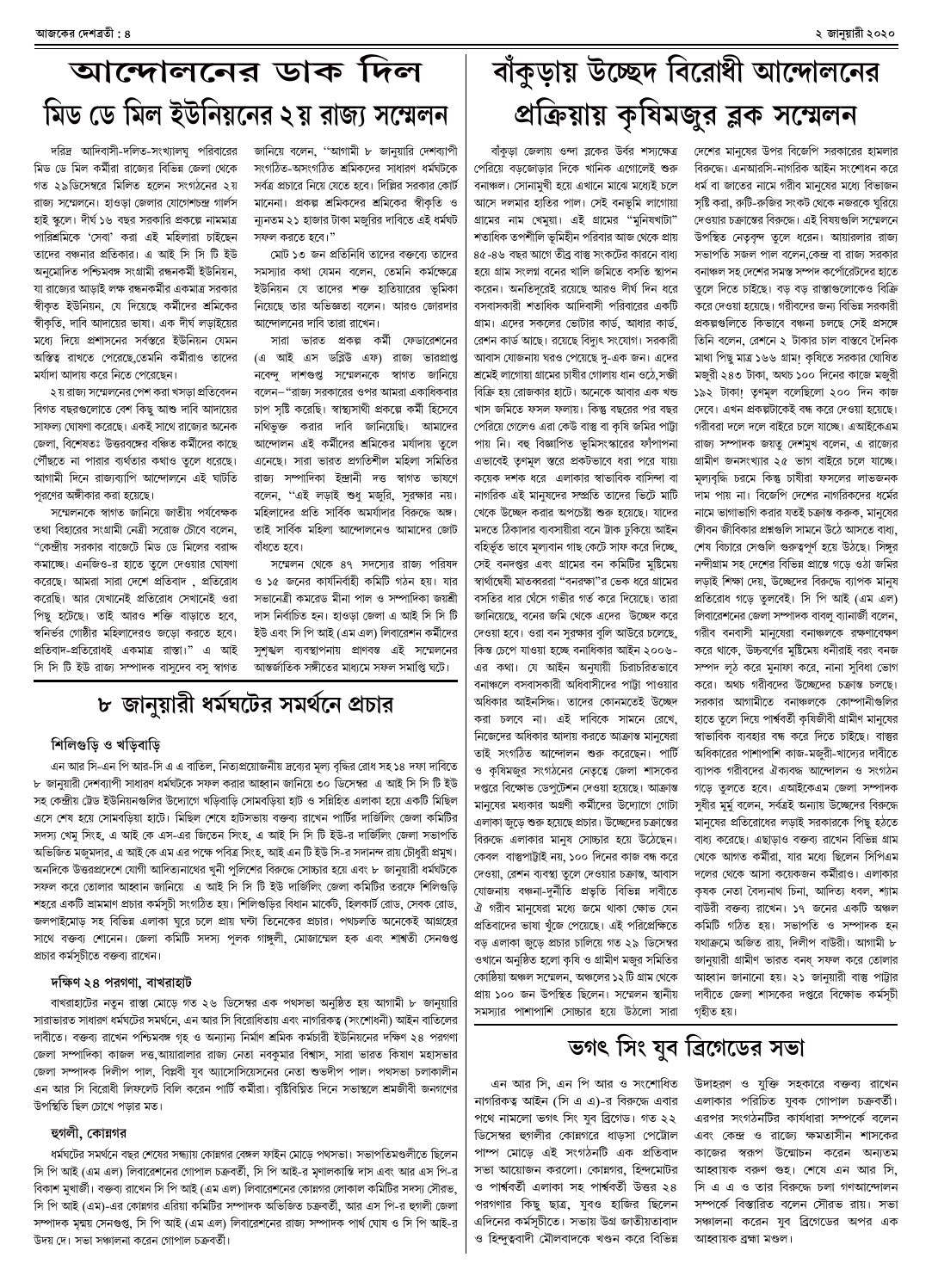 ২ জানুয়ারী ২০২০ সংখ্যা দেশব্রতী পৃ-৪