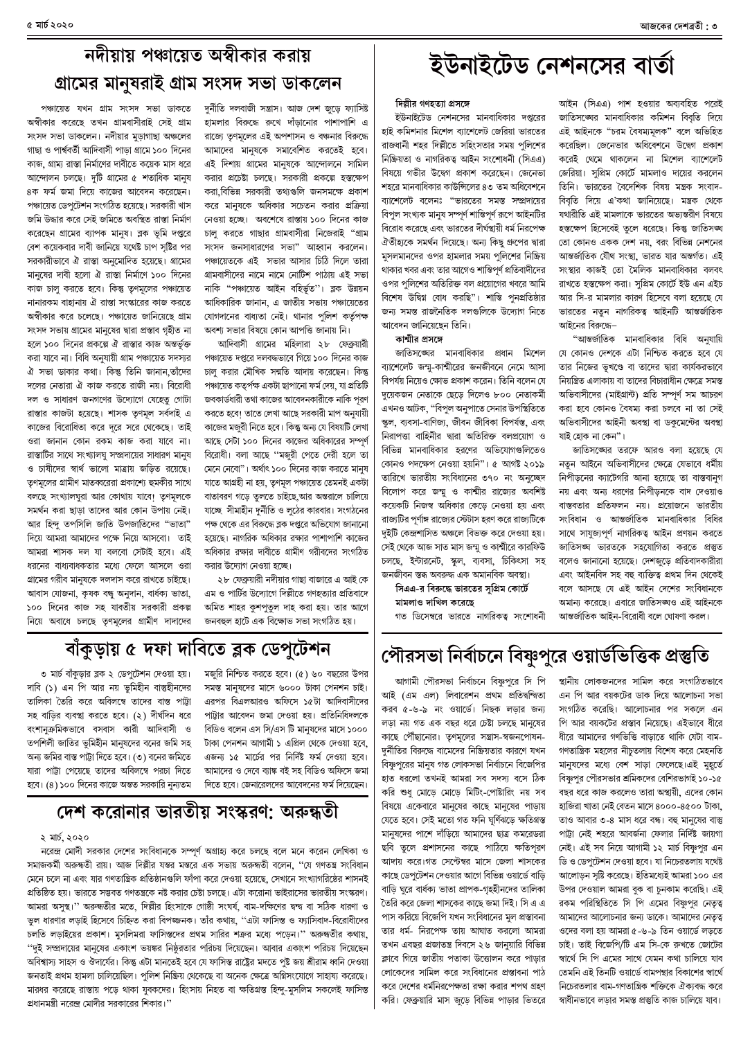 ৫ মার্চ ২০২০ সংখ্যা দেশব্রতী পৃ-৩