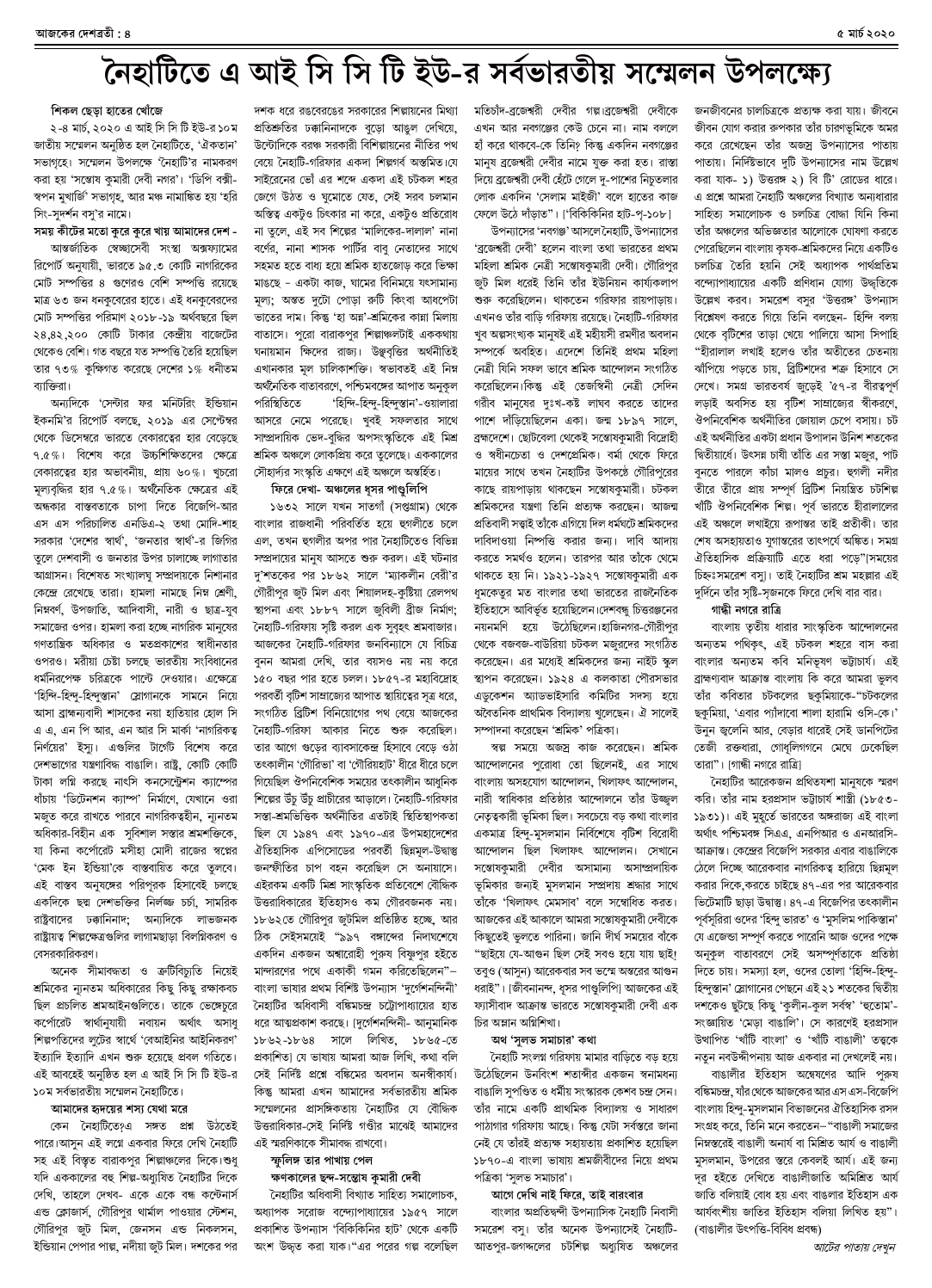 ৫ মার্চ ২০২০ সংখ্যা দেশব্রতী পৃ-৪