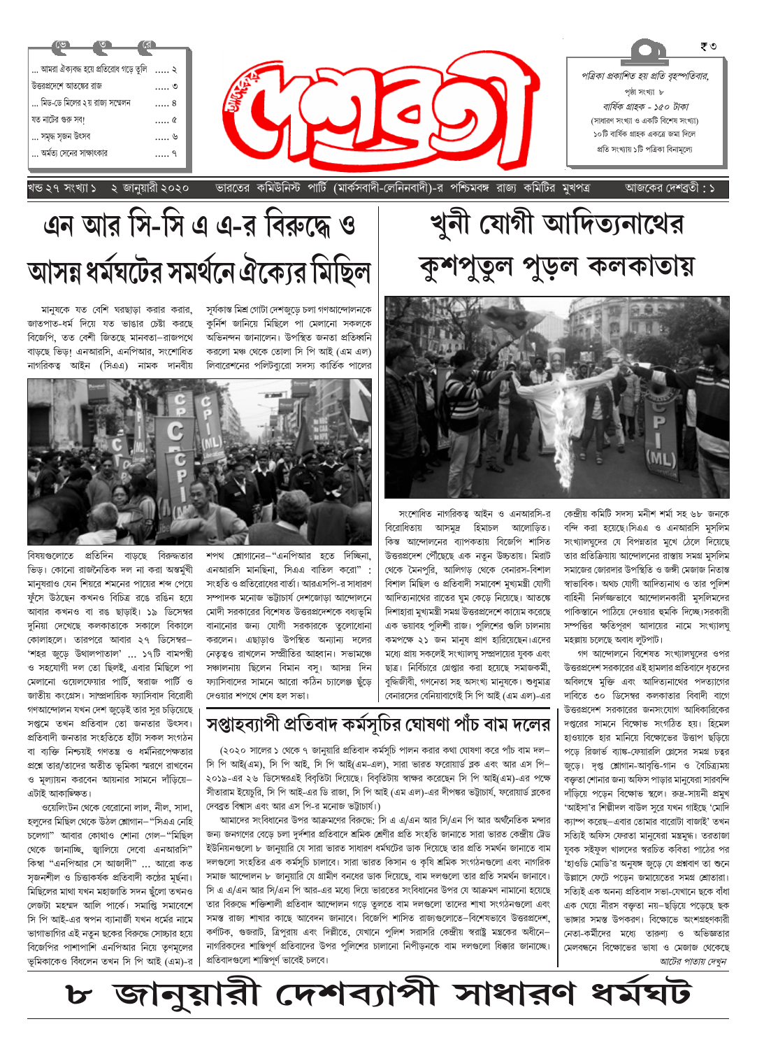 দেশব্রতী খণ্ড ২৭, সংখ্যা ১ (২ জানুয়ারী ২০২০)