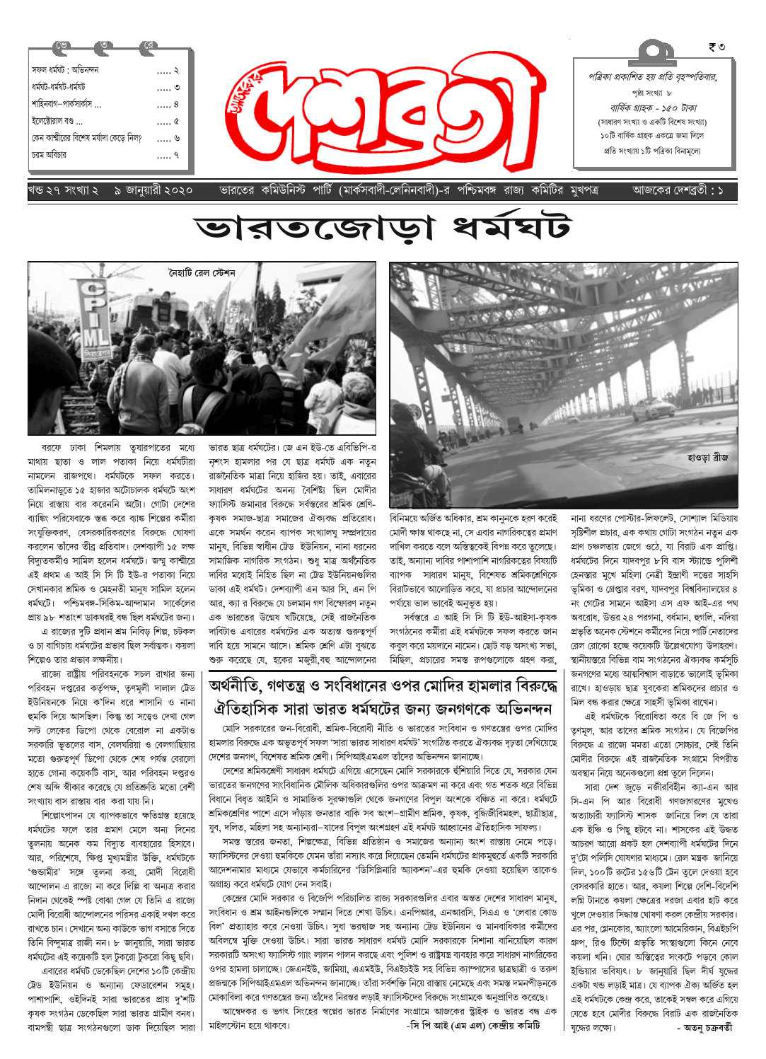 দেশব্রতী খণ্ড ২৭, সংখ্যা ২ (৯ জানুয়ারী ২০২০)