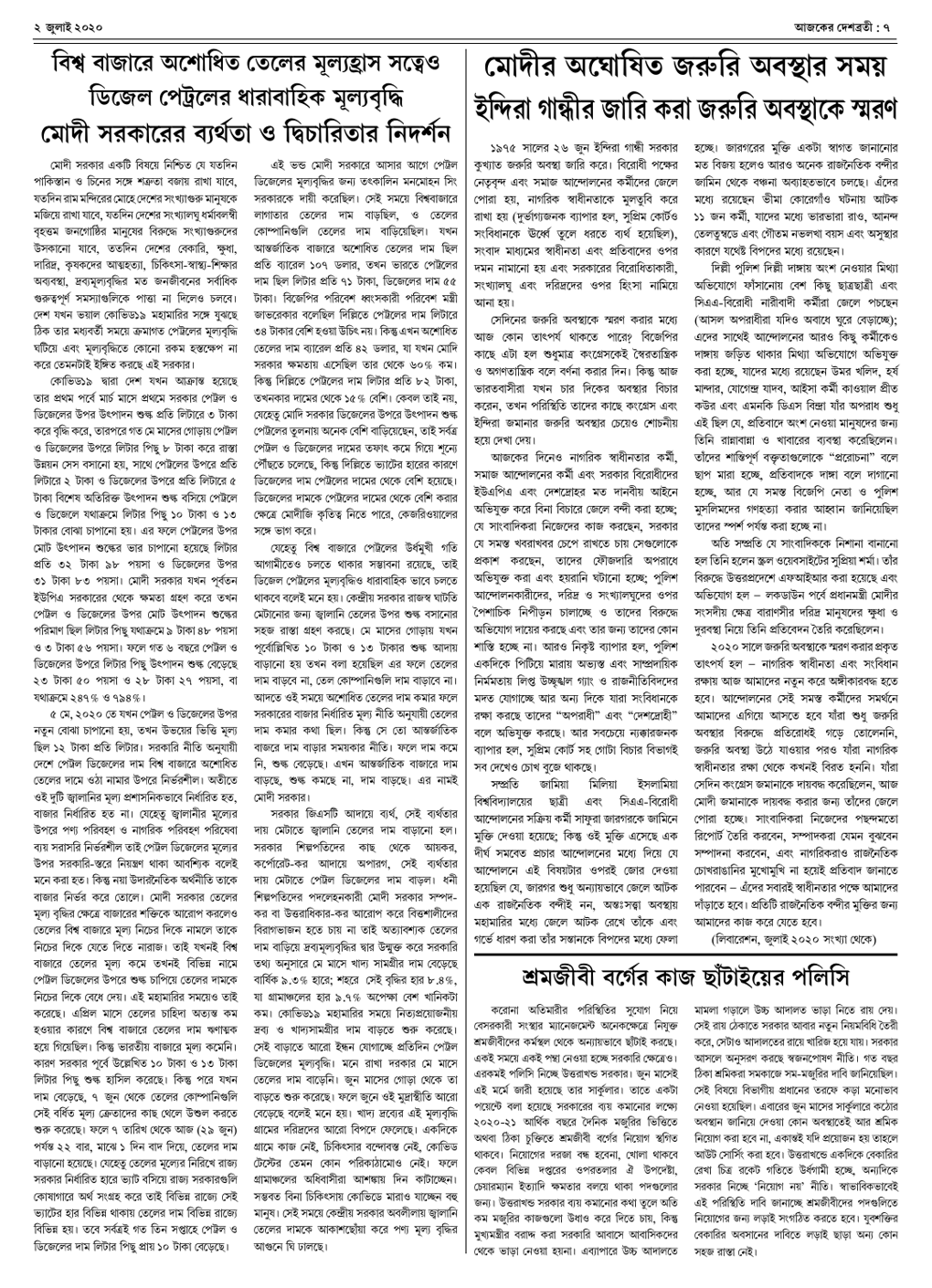 দেশব্রতী খণ্ড ২৭, সংখ্যা ২২ (২ জুলাই ২০২০) পৃঃ ৭