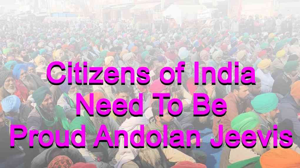 We Andolan Jeevis stand in the proud tradition of the freedom movement. Naturally Mr Modi cannot appreciate movements - since his own organisation the RSS did not participate in the freedom struggle. The RSS served the British empire and its Company Raj then; the Modi Raj serves the Company Raj now, and is dependent on corrupt corporate funding through electoral bonds, for its survival. We Andolan Jeevis in contrast depend on "We The People" of India alone.