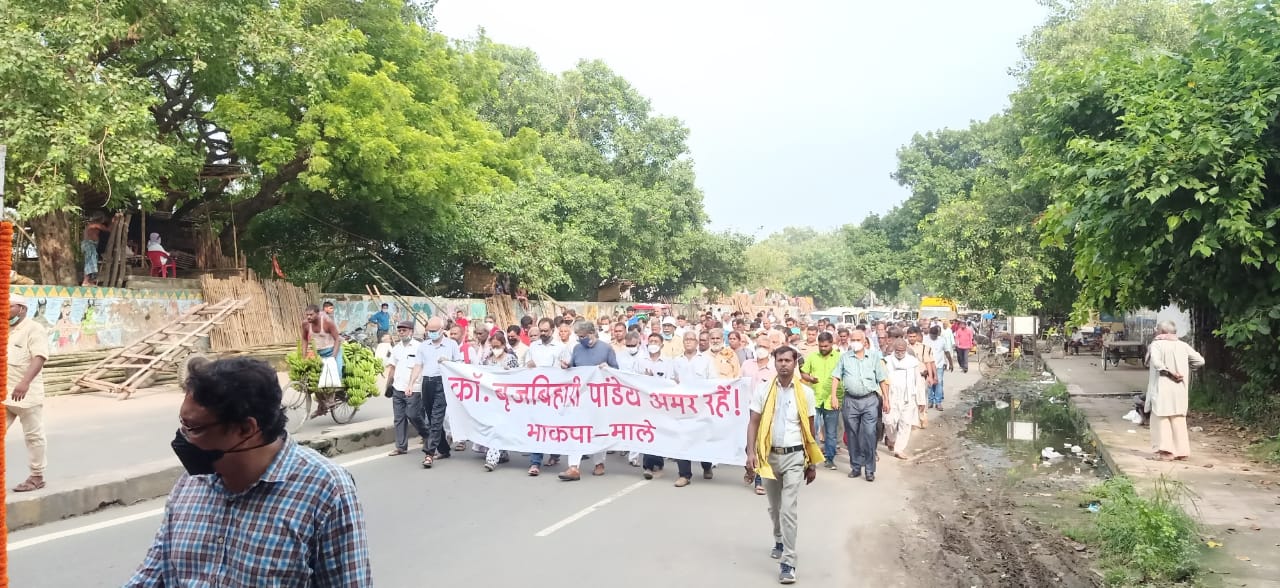 Hundreds of CPIML activists bid a final farewell to their beloved leader Comrade Brij Bihari Pandey on 27 August 2021 with the pledge to carry forward the struggle for change. The final journey started from the legislative party office in Patna at 3 pm and proceeded through various parts of the city to reach Baans Ghat.