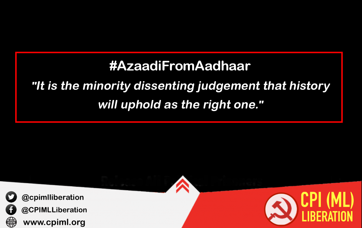 We welcome the dissenting verdict by Justice Chandrachud, which struck down the Aadhaar law on the grounds that “(the) entire Aadhaar programme, since 2009” suffers from “Constitutional infirmities and violations of fundamental rights”.
