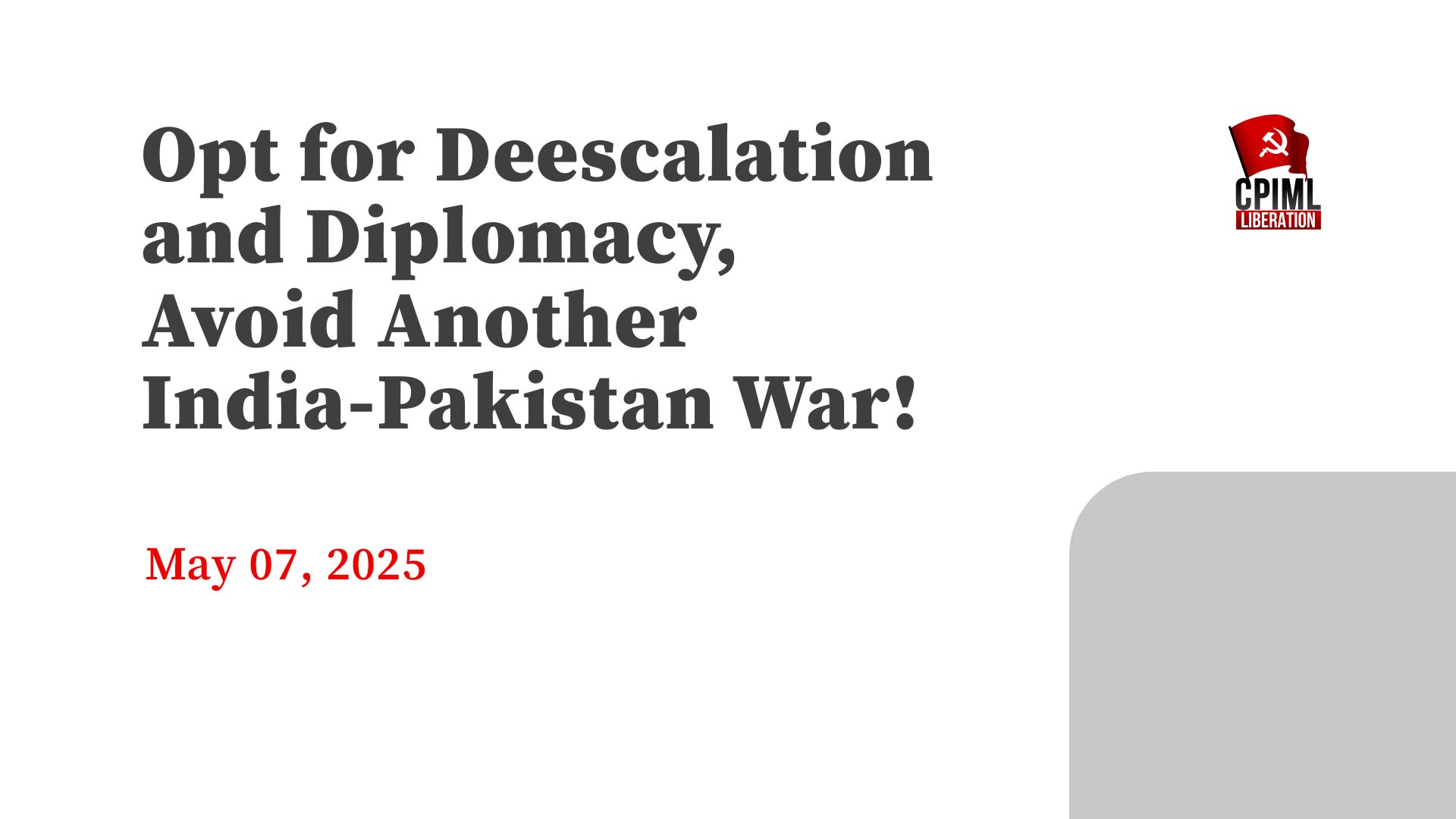 CPI(ML) Central Committee statement in the wake of Operation Sindoor: