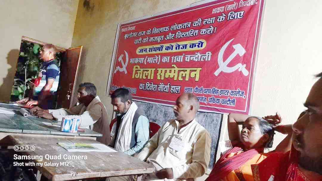 ‘बुल्ल्डोजर राज के खिलाफ लोकतंत्रा की रक्षा के लिए भाकपा(माले) को मजबूत और विस्तारित करो’ नारे के साथ भाकपा(माले) का 11वां चंदौली जिला सम्मेलन विगत 3-4 सितंबर 2022 को जिले के चकिया ब्लॉक के शिकारगंज स्थित चौधरी चरण सिंह इंटर कॉलेज में कामरेड शशिकांत सिंह, कामरेड रमेश राय, कामरेड सूचित राम, कामरेड मुन्नी गोंड तथा कामरेड प्रमिला मौर्य के पांच सदस्यीय अध्यक्ष मंडल तथा राज्य पर्यवेक्षक कामरेड सुरेश कोल की देख रेख में संपन्न हुआ.