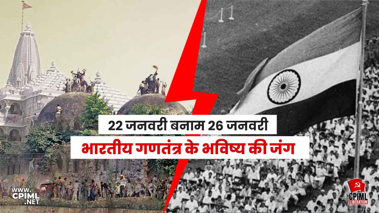 संघ ब्रिगेड के लिए 22 जनवरी बेशक एक नया गणतंत्र दिवस है जिसमें 26 जनवरी 1950 से लागू भारत के संविधान में निहित मूल्यों और उद्देश्यों की खुलेआम अवहेलना का राज्य द्वारा उत्सव मनाया जायेगा. भारत के गणतंत्र दिवस को तो पहले से ही भारत के संसदीय लोकतंत्र की संवैधानिक बुनियाद की मजबूती के प्रदर्शन की जगह भारत की सैन्य शक्ति के प्रदर्शन के मंच में तब्दील कर दिया गया है. आगामी गणतंत्र दिवस 2024 पर आधुनिक भारत के संविधान को पुर्नस्थापित करने की चुनौती हमारे लिए सबसे बड़ी है. गणतांत्रिक भारत केवल और केवल एक धर्मनिरपेक्ष लोकतंत्र के रूप में जिन्दा रह सकता है. हमारे पूर्वज 26 जनवरी 1950 को एक स्वतंत्र गणराज्य की स्थापना के अग्रदूत बने थे, आइए हम भारत के लोग उसी सपने को पूरी शक्ति, साहस और दृढ़निश्चय के साथ आगे बढ़ाने का आज संकल्प लें.