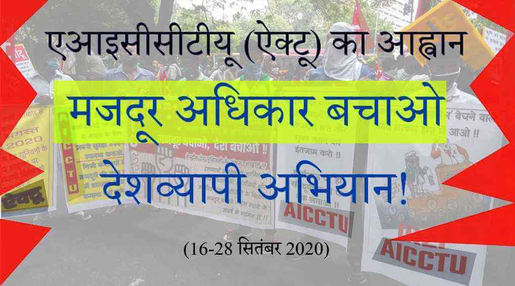 ऐक्टू मजदूरों को उनके अधिकारों से वंचित करने के हर प्रस्ताव की सख्त भर्त्सना करता है और केंद्र सरकार से मांग करता हैः वह 12 घंटे के कार्यदिवस के प्रस्ताव को खारिज करे! वह मनरेगा समेत तमाम मजदूरों की लाॅकडाउन के दौर की मजदूरी सुनिश्चित करे, छंटनी के खिलाफ सख्त कार्रवाई करे! ऐक्टू मांग करता है कि प्रवासी मजदूरों के आश्रय, भोजन और मजदूरी समेत तमाम समस्याओं के हल के लिये केंद्रीय ट्रेड यूनियनों को शामिल कर स्पेशल टास्क फोर्स का गठन किया जाए!