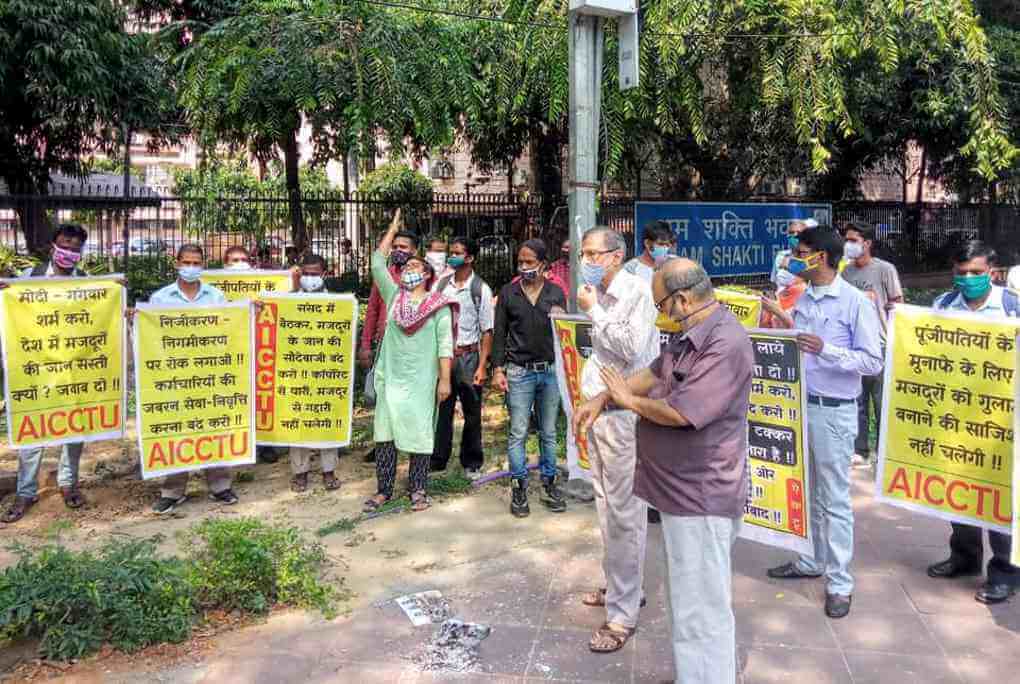 दिल्ली में श्रम मंत्रालय के सामने श्रम संहिता विधेयकों की प्रतियां जलाई गईं. प्रदर्शन के दौरान दिल्ली पुलिस द्वारा ऐक्टू के राष्ट्रीय महासचिव राजीव डिमरी व ऐक्टू दिल्ली के अध्यक्ष संतोष राॅय के साथ श्वेता राज और मधृरिमा कुण्डू को मंदिर मार्ग और संसद मार्ग पुलिस थानों में हिरासत में ले लिया और काफी जद्दोजहद के बाद ही उन्हें रिहा किया.