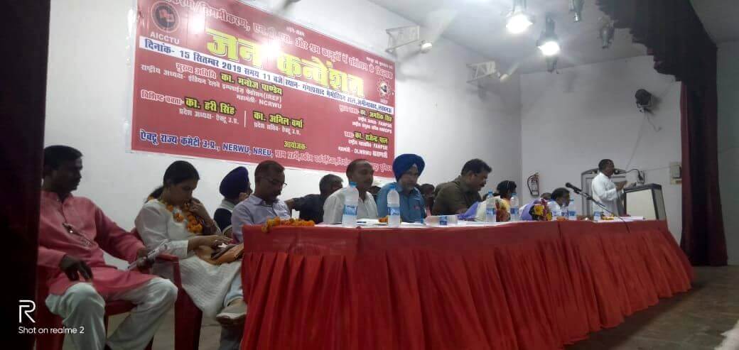 पूर्वोत्तर रेलवे (एनईआर) वर्कर्स यूनियन तथा ऐक्टू की उत्तर प्रदेश इकाई के तत्वावधान में 15 सितंबर 2019 को लखनऊ के गंगा प्रसाद मेमोरियल हाॅल (अमीनाबाद) में जन कन्वेंशन का आयोजन किया गया. कन्वेंशन के मुख्य वक्ता रेल मजदूर नेता व ‘फ्रंट अगेंस्ट न्यू पेंशन स्कीम इन रेलवे’ (एफएएनपीएसआर) के राष्ट्रीय अध्यक्ष का. अमरीक सिंह ने कहा कि रेलवे, रक्षा, बैंक, बीमा, तेल सहित सार्वजनिक क्षेत्र के तमाम उपक्रमों को मोदी सरकार कारपोरेट घरानों के हवाले करना चाहती है. निगमीकरण उसका पहला चरण है. उन्होंने कहा कि सार्वजनिक क्षेत्र का निजीकरण देशद्रोह है, क्योंकि इसमें आम जनता के खून-पसीने की कमाई लगी है. सार्वजनिक क्षेत्र किसानों-मजदूरों के बच्चों को सर्वाधिक रोजगार उपलब्ध कराते हैं. एक समय अकेले रेलवे 21 लाख लोगों को रोजगार देता था, किन्तु आज रेलवे में बमुश्किल 11 लाख ही कर्मचारी रह गये हैं. इस दौरान रेलयात्रियों, रेल गाड़ियों व मालगाड़ियों की संख्या में वृद्धि हुई है और रेल पटरियों का विस्तार हुआ है. रेल मजदूरों से डेढ़ गुना अधिक काम लिया जा रहा है. उन्होंने कहा कि स्थापित मजदूर संगठनों ने आंदोलन को कुछ मांगों तक ही सीमित कर दिया था, इसलिए हम उदारीकरण के हमलों को नहीं रोक सके. उन्होंने आगे कहा कि मोदी सरकार मजदूर वर्ग सहित समाज के सभी हिस्सों में विभाजन व नफरत पैदा कर रही है. भाजपा का हमला सर्वव्यापी है. इसका जवाब भी संघर्ष में सबकी एकता से ही दिया जा सकता है.