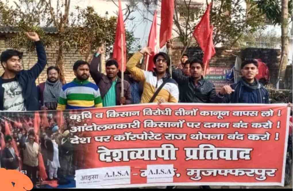 किसान आंदोलन पर बर्बर दमन, किसान नेताओं व पत्रकारों को झूठे मुकदमे में फंसाने तथा काले कृषि कानूनों के खिलाफ संयुक्त किसान संघर्ष मोर्चा के राष्ट्रव्यापी चक्का जाम के समर्थन में आइसा ने विगत 6 फरवरी 2021 को मुजफ्फरपुर (बिहार) में ‘छात्र-नौजवान मार्च’ निकाला.