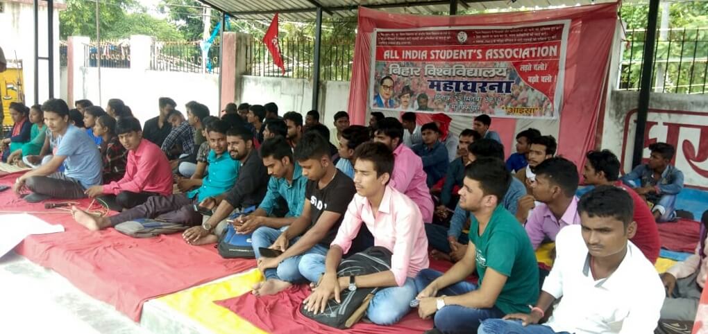 आइसा के नेतृत्व में सैकड़ों छात्रों ने शैक्षणिक अराजकता, शिक्षा के निजीकरण व भगवाकरण, बेतहाशा बढ़ती बेरोजगारी तथा उन्माद-उत्पात की राजनीति के खिलाफ मुजफ्फरपुर विश्वविद्यालय परिसर में धरना दिया. इस दौरान शैक्षणिक सत्रों को नियमित करने, सभी छात्रों के नामांकन की गारंटी करने, स्नातक के रिजल्ट में भारी गड़बड़ी – जिससे 75 प्रतिशत छात्रों का रिजल्ट पेंडिंग है – को ठीक करने, मुजफ्फरपुर विश्वविद्यालय को केन्द्रीय विश्वविद्यालय का दर्जा देने तथा विश्वविद्यालय में व्याप्त भ्रष्टाचार, दबंगता तथा आपराधिक घटनाओं पर रोक लगाने की मांग उठाई गई.