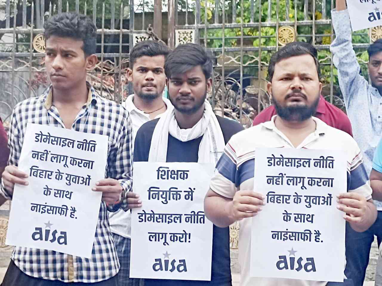 शिक्षक नियुक्ति में डोमेसाइल नीति वापस लेने के खिलाफ आइसा ने विगत 29 जून 2023 को पटना विश्वविद्यालय के मुख्य द्वार प्रदर्शन किया. आइसा नेताओं ने कहा कि शिक्षक नियुक्ति में डोमेसाइल नीति खत्म करने का फैसला दुर्भाग्यपूर्ण है. शिक्षक अभ्यर्थी बहाली के इंतजार में बैठे हैं लेकिन सरकार बहाली प्रक्रिया में लगातार अड़चन पैदा कर रही है. यह बिहार के युवाओं के साथ नाइंसाफी है.बिहार जैसे राज्य में जहां पहले से ही बहुत ज्यादा बेरोजगारी है, डोमेसाइल नीति खत्म करना कही से भी उचित नहीं है.