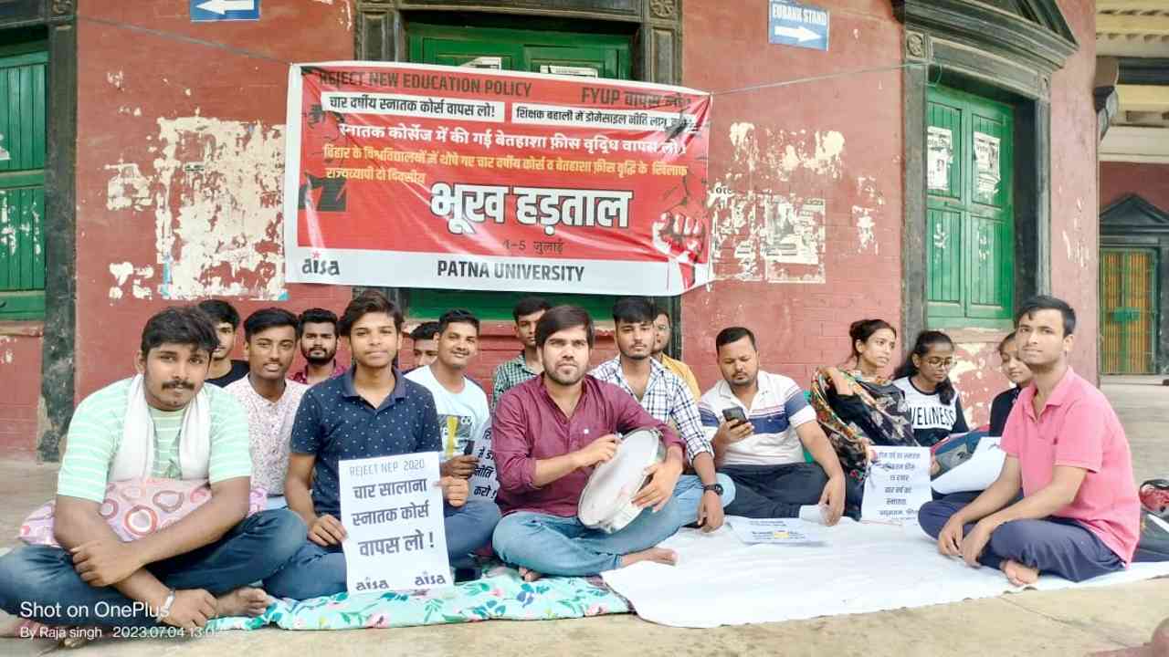 बिहार में लागू हो रहे चार सलाना स्नातक कोर्स एवं फीस वृद्धि के खिलाफ विगत 4-5 जुलाई 2023 को आइसा (ऑल इंडिया स्टूडेंट्स एसोसिएशन) ने राज्यव्यापी दो दिवसीय भूख हड़ताल किया. पटना विश्वविद्यालय, मगध विश्वविद्यालय (गया), वीर कुंवर सिंह विश्वविद्यालय (आरा), ललित नारायण मिथिला विश्वविद्यालय (दरभंगा), बीएन मंडल विश्विद्यालय (मधेपुरा), जेपी विश्वविद्यालय (छपरा), तिलका मांझी विश्वविद्यालय (भागलपुर) आदि सहित राज्य भर में लगभग सभी विश्वविद्यालय मुख्यालयों पर भूख हड़ताल का आयोजन किया गया. इासके अलावे डीके काॅलेज (बक्सर) समेत बेगुसराय, सीवान और बेतिया के कई महाविद्यालय मुख्यालयों के समक्ष भी कार्यक्रम आयोजित हुआ.