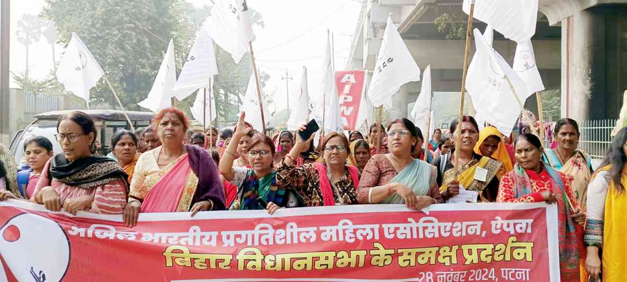 जीविका समूहों की सभी महिलाओं के स्थाई रोजगार व उनके उत्पाद की सरकारी खरीद, समूह की महिलाओं की बचत राशि से जीविका कैडरों के मानदेय को बंद करने, 2022 तक (कोविड काल) तक के कर्ज की माफी, माइक्रोफाइनेंस कंपनियों द्वारा मनमानी सूद वसूली और किस्त वसूली की प्रताड़ना पर रोक, माइक्रो फाइनेंस कंपनियों पर निर्भरता को खत्म करने, सरकारी समूहों से महिलाओं को उनकी जरूरत के मुताबिक कर्ज देने, झारखंड व अन्य कुछ राज्यों की तरह बिहार में भी सभी महिलाओं को 3 हजार रुपए की मासिक सहायता देने तथा महिलाओं पर अत्याचार-बलात्कार की घटनाओं पर रोक लगाने के लिए पुलिस प्रशासन को जवाबदेह बनाए जाने की मांग पर 28 नवंबर 2024 को महिला संगठन ऐपवा के बैनर तले बिहार के कोने-कोने से आई हजारों महिलाओं ने जुझारू प्रदर्शन किया.
