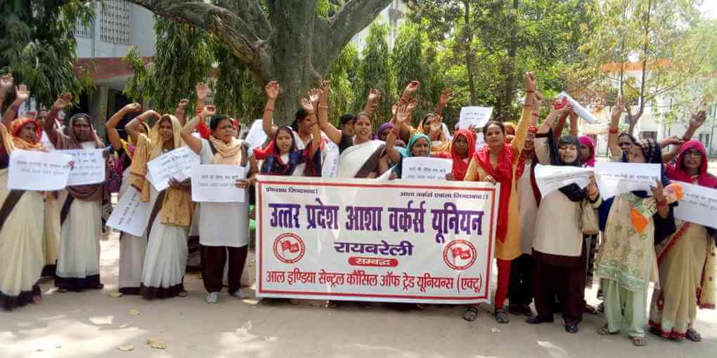 रायबरेली में आशा कर्मियों ने बकाया मानदेय भुगतान व 18000 रुपये न्यूनतम वेतन की मांग को लेकर विकास भवन में धरना दिया. धरने को सम्बोधित करते हुये उत्तर प्रदेश आशा वर्कर्स यूनियन की जिला अध्यक्ष अनीता मिश्रा ने कहा कि आशा वर्कर्स से जान लेवा काम लेने के बावजूद उन्हें उनके श्रम का प्रतिफल नहीं दिया जा रहा है. उनको मिलने वाला मानदेय दैनिक मजदूरी से भी कम है और उसकेजरिये जीवन चलाना मुश्किल है. उनको कोविड सर्वे, कोविड टीकाकरण और दस्तक जैसे कार्याे का परितोषिक भी नहीं दिया गया. यूनियन की महामंत्री सावित्री देवी ने कहा कि जिले भर की माताओं और शिशुओं की हिफाजत करने वाली आशा मातृत्व काल मे भी काम करने को बाध्य हैं. उनके काम को न तो सम्मानजनक प्रतिफल मिलता है और न ही समय से कोई भुगतान.