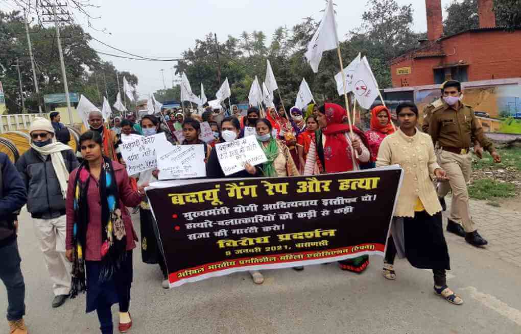 बदायूं में हुए बर्बर सामूहिक बलात्कार की घटना के खिलाफ 9 जनवरी को यूपी की ऐपवा ईकाई ने भी जगह-जगह विरोध मार्च आयोजित किया. कार्यक्रम में शामिल महिलाएं बेहद रोष में थीं. उनका कहना था कि इससे पहले हाथरस की घटना हुई और पूरे सूबे में विरोध हुआ इसके बावजूद महिलाओं के उत्पीड़न की घटनाएं नहीं रुक रही हैं.