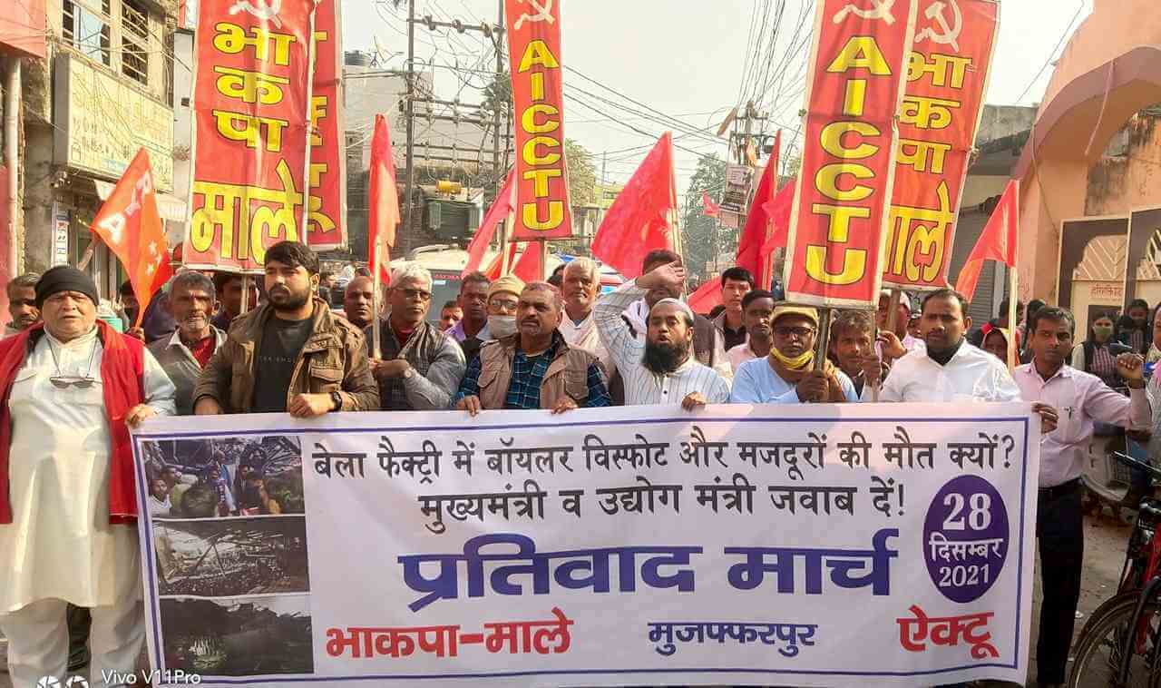 समाज सुधार यात्रा के दौरान मुख्यमंत्री नीतीश कुमार के मुजफ्फरपुर पहुंचने की पूर्व संध्या पर 28 दिसंबर को भाकपा(माले) और ऐक्टू ने प्रतिवाद मार्च निकाला और इस आपराधिक लापरवाही के लिए मुख्यमंत्री व उद्योग मंत्री से जवाब मांगा. मार्च के पहले हरिसभा चौक के निकट स्थित माले कार्यालय में दो मिनट का मौन रख कर मौत के शिकार हुए मजदूरों को श्रद्धांजलि दी गई और औद्योगिक क्षेत्रों में श्रम कानूनों व सुरक्षा मानकों में जारी सरकारी लापरवाही व मनमानी के खिलाफ संघर्ष तेज करने का संकल्प लिया गया.