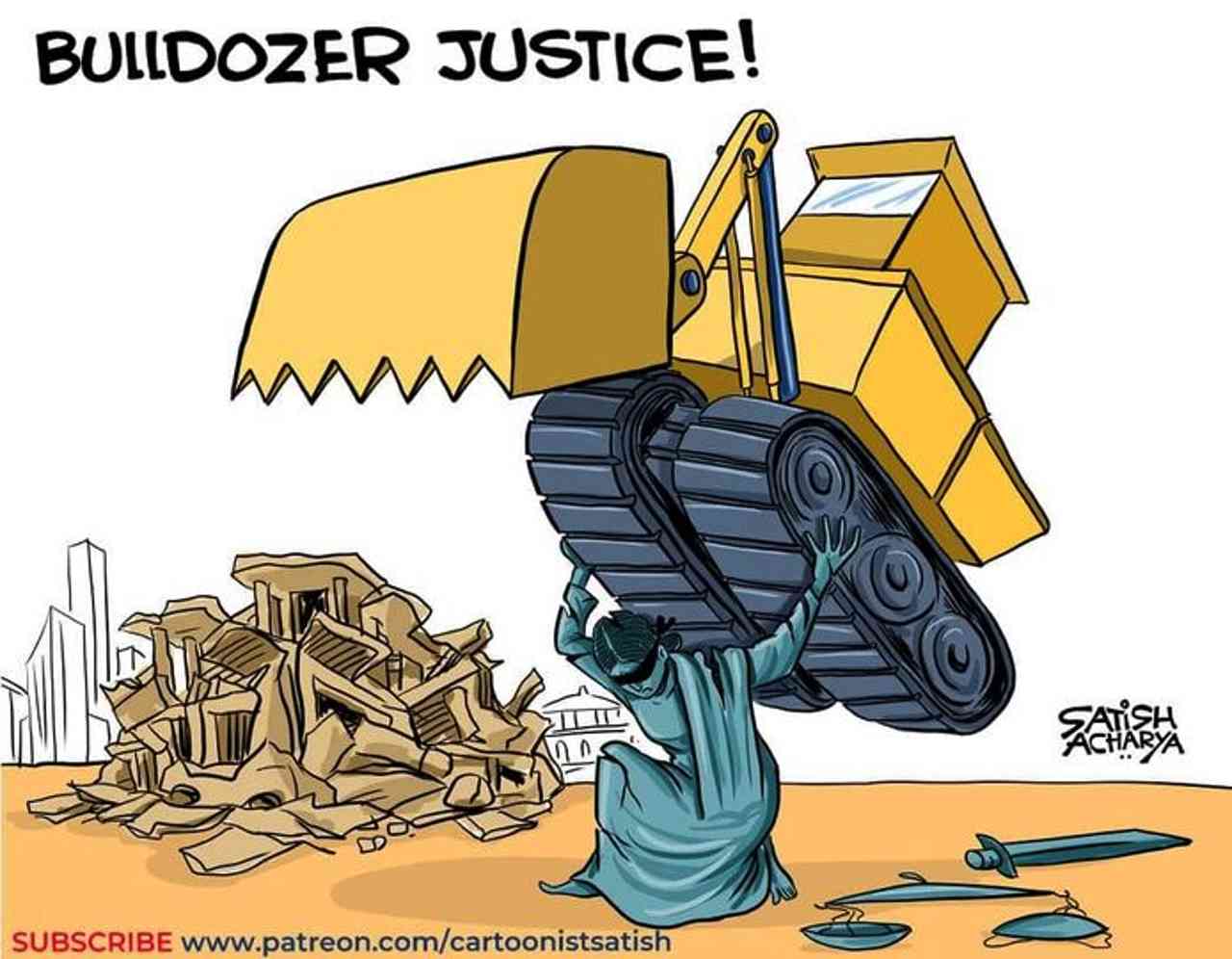 बुलडोजर कभी भी न्याय का हथियार नहीं हो सकते हैं, वे स्पष्ट रूप से आतंक और विनाश के उपकरण हैं, जो लोकतंत्र और कानून के शासन की हर धारणा को रौंदने वाले एक उग्र राज्य का प्रतीक है. पूरे भारत में जहां गरीबों को जमीन, खनिज, वन और नदी जल लोगों से मुनाफा संचय के लिए छीना जा रहा है वहीं बुलडोजर कॉर्पारेट अधिग्रहण के वाहन हैं. और भारत में मुस्लिम समुदाय के लिए, उग्र बुलडोजर कुछ भी नहीं बल्कि लक्षित आतंक और फासीवादी आक्रामकता के उपकरण हैं जो भारत के सबसे बड़े धार्मिक अल्पसंख्यक समुदाय को चुप करने के लिए मजबूर करना चाहते हैं क्योंकि फासीवादी अपने संवैधानिक अधिकारों के एक पूरे समुदाय को लूटते हैं. लोकतांत्रिक भारत को बुल्डोजर को रोकने और हर हाशिए पर रहने वाले समूह के अधिकारों और गरिमा की रक्षा करने के लिए अपनी पूरी ताकत को सम्मन करना चाहिए.