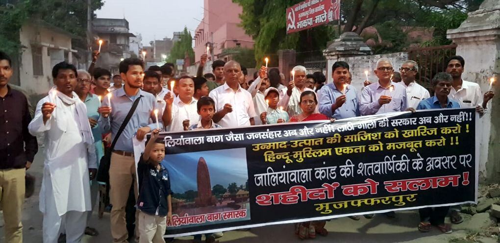जलियांवाला बाग हत्याकांड की शतवार्षिकी की पूर्व संध्या पर 12 अप्रैल 2019 को पटना सहित राज्य के विभिन्न केंद्रों पर कैंडल मार्च निकाला गया और हत्याकांड में मारे गए शहीदों को श्रद्धांजलि दी गई. राजधानी पटना के कारगिल चौक (भगत सिंह चौक) और पटना सिटी में नागरिकों की ओर से कैंडल मार्च निकाला गया. कारगिल चौक पर हुई श्रद्धांजलि सभा में सैकड़ों की संख्या में लोग उपस्थित थे. ऐपवा की महासचिव मीना तिवारी ने अपने संबोधन में कहा कि जलियांवाला बाग हत्याकांड न केवल साम्राज्यवादी ताकतों की क्रूरता का बल्कि हिंदू-मुस्लिम एकता का भी परिचायक है. उन्होंने कहा कि देश ने जिस हिन्दू-मुस्लिम एकता के बल पर साम्राज्यवाद का मुकाबला किया था, आज उस एकता को आज के निरंकुश शासकों के हमलों से हर कीमत पर बचाने की चुनौती हमारे सामने है.