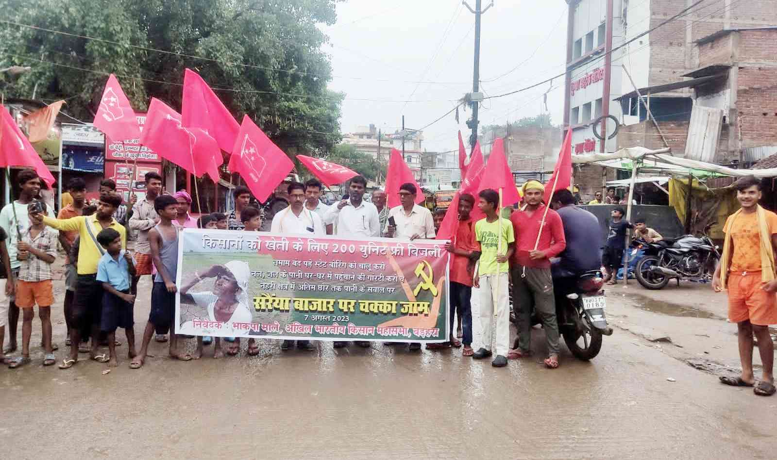 भोजपुर जिले में बंद पड़े सभी सरकारी नलकूपों (स्टेट बोरिंग) को चालू करने, नहरों के अंतिम छोर तक पानी देने, गांवो में पेयजल की संकट को दूर करने आदि मांगों को लेकर भोजपुर जिले के 12 प्रखंडों पर अखिल भारतीय किसान महासभा और भाकपा(माले) द्वारा विगत 7 अगस्त 2023 को करीब 4 घंटे से ज्यादा चक्का जाम हुआ. इस दौरान किसानों ने जिला प्रशासन और सरकार के खिलाफ नारे लगाए गए और नुक्कड़ सभा कर नाराजगी जताई.