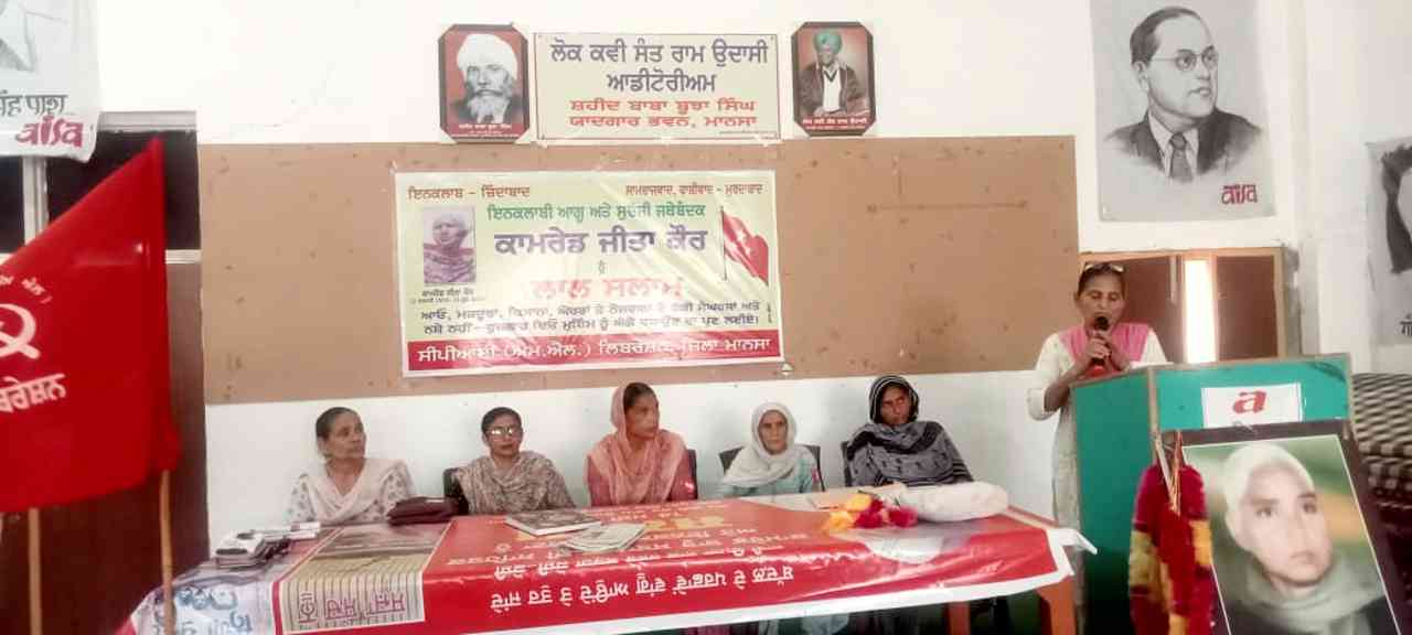 मानसा (पंजाब) में विगत 23 जून 2023 को क्रांतिकारी महिला और भाकपा(माले) नेत्री का. जीता कौर की 16वीं बरसी पर चेतना सम्मेलन आयोजित हुआ. इस मौके पर सामाजिक, आर्थिक, राजनीतिक व सांस्कृतिक समानता के लिए महिलाओं को संगठित करने तथा ‘नशा नहीं-रोजगार दो’ अभियान को मजबूत करने का आह्वान किया गया. कामरेड जीता कौर, जो पंजाब में पार्टी संयोजक के रूप में काम कर रही थीं, का कैंसर की बिमारी के कारण 23 जून 2007 को 48 वर्ष की आयु में असमय निधन हो गया था.