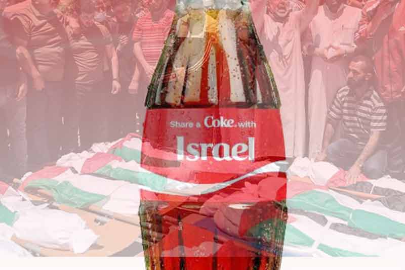 कोका-कोला 1966 से इजरायल का कट्टर समर्थक रहा है. इजराइल सरकार ने इजरायल के निरंतर समर्थन के लिए कोका-कोला को सम्मानित किया था. हर साल कोका कोला अमेरिकन-इजरायल चैंबर ऑफ कॉमर्स अवार्ड्स का आयोजन करता है, जो उन कंपनियों को सम्मानित करता है जिन्होंने इजराइली अर्थव्यवस्था में सबसे अधिक योगदान दिया है. 2009 में कोका-कोला प्रायोजित पुरस्कार इजरायल की लॉबी एआईपीएसी को ‘तत्काल युद्धविराम’ के लिए संयुक्त राष्ट्र के आह्वान को अस्वीकार करने और गाजा पर इजरायली सैन्य हमले को जारी रखने का समर्थन करने के लिए सीनेट की पैरवी के लिए दिया गया था. 2009 में कोका-कोला ने ब्रिगेडियर-जनरल बेन-एलिएजर के सम्मान में कोका-कोला विश्व मुख्यालय में एक विशेष स्वागत समारोह का आयोजन किया जो एक वांछित युद्ध अपराधी था. अरब इजरायल के छह-दिवसीय युद्ध के दौरान उसकी इकाई ने 300 से अधिक मिस्र के युद्ध बंदियों का कत्ल कर दिया था. शेरोन के अधीन बेन-एलिएजर ने जेनिन में नरसंहार को अंजाम हुए रक्षा मंत्री के रूप में कार्य किया.
