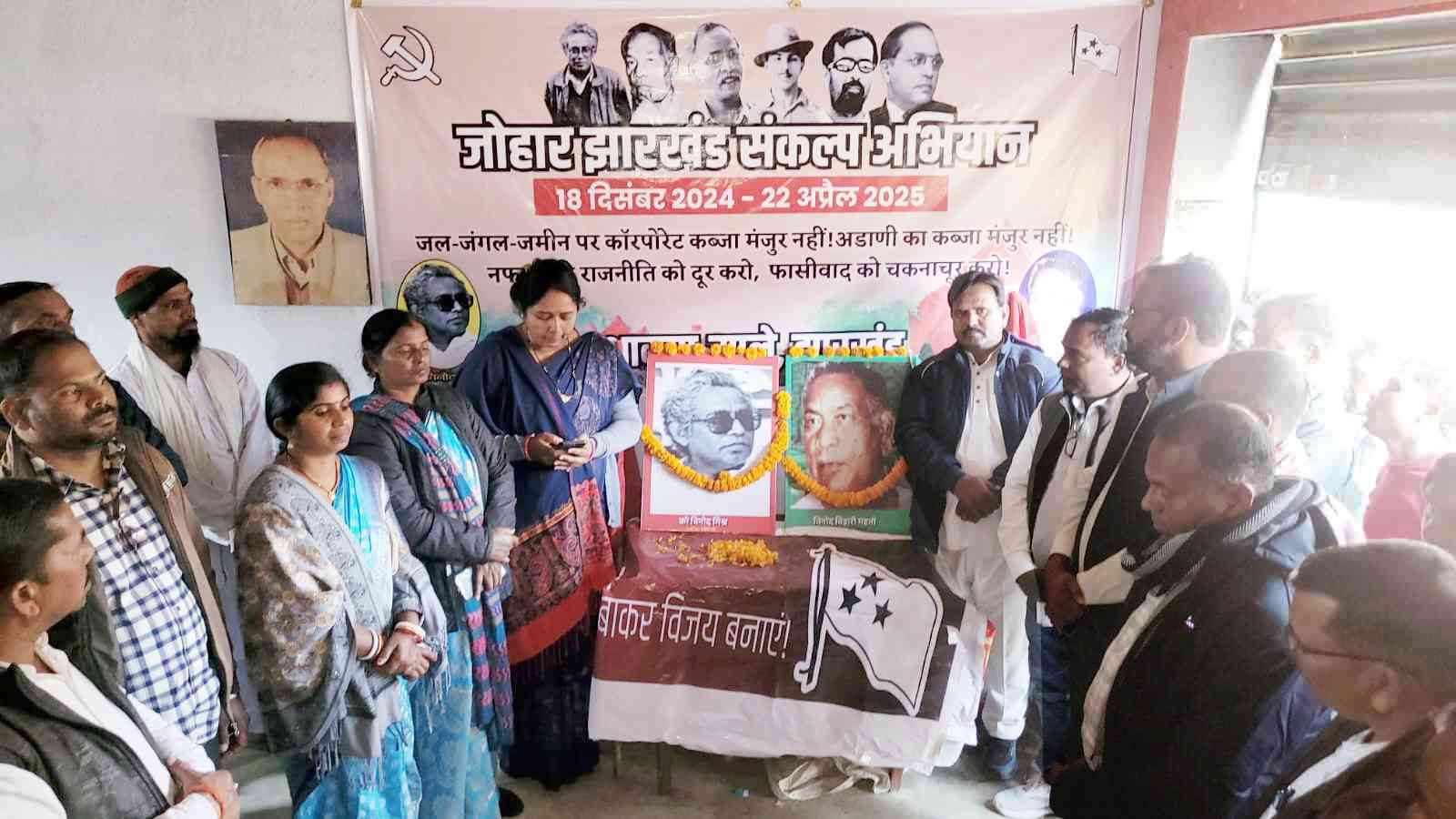 गोविन्दपुर एरिया कमिटी की और से रतनपुर पार्टी कार्यालय में वरिष्ठ नेता का. फटिक मंडल की अध्यक्षता व जिला सह सचिव कार्तिक प्रसाद के नेतृत्व में आयोजित संकल्प सभा में का. विनोद मिश्र और विनोदबिहारी महतो की तस्वीरों पर माल्यार्पण किर उन्हें दो मिनट का मौन श्रद्धांजलि दी गइ तथा केन्द्रीय कमिटी का आह्वान (संकल्प पत्र) का पाठ किया गया. इसके बाद 18 दिसंबर 2024 से से 22 अप्रेल 205 तक चलनेवाले ‘जोहार झारखंड संकल्प अभियान’ की योजना बनाई गई.