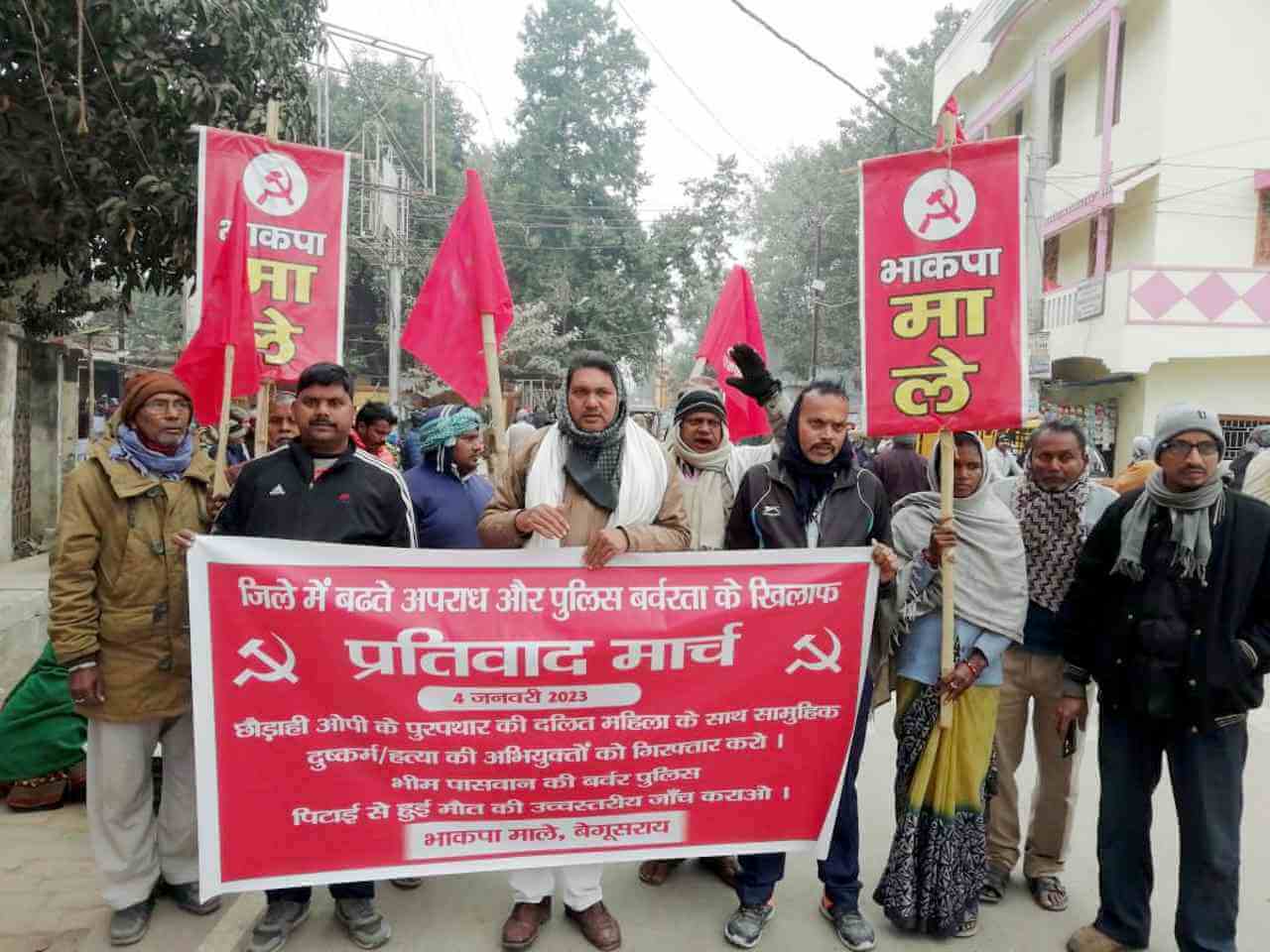 बेगूसराय ढबिहार) में बढ़ते अपराध और पुलिसिया ज्यादती के खिलाफ वगत 4 जनवरी 2023 को भाकपा(माले) ने प्रतिवाद मार्च किया.