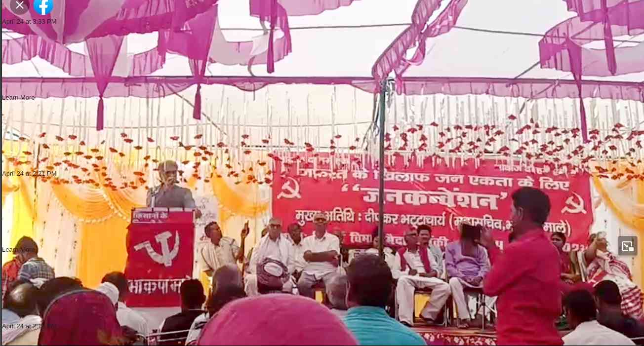 उन्होंने कहा कि नीलांबर-पीतांबर और हजारों शहीदों की कुर्बानियों से हमें आजादी और बराबरी के साथ रहने का अधिकार मिला है. भगत सिंह और अंबेडकर ने हमें अपने अधिकारों के लिए लड़ना सिखाया है. भाकपा(माले) का लाल झंडा गरीबों के संघर्षों का प्रतीक है. जल-जंगल-जमीन और रोजगार हमारा अधिकार है. हमें इसके लिए जन संघर्षों को तेज करना है और संप्रदायिक उन्नमादियो को अलगाव में डालना है. जन कन्वेशन की अध्यक्षता सरफराज आलम और संचालन आरवाईए राज्य सचिव अविनाश रंजन ने किया. कार्यक्रम को जिला परिषद सदस्य सह माले नेत्री खुशबू कुमारी, आइसा राज्य सचिव त्रिलोकीनाथ, किसान महासभा के प्रदेश अध्यक्ष डाॅ. बी एन सिंह, किसान नेता केडी सिंह, ऐपवा नेत्री गीता मंडल, जिला सचिव आरएन सिंह, कमेश सिंह चेरो, दिव्या भगत आदि ने भी संबोधित किया.