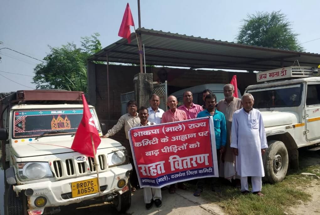 बिहार राज्य कमेटी की रहनुमाई में दरभंगा में 30 अगस्त 2019 को पार्टी द्वारा संग्रह की गई राहत राशि एवं सामग्री को कमला तटबंध पश्चिमी भाग टूटने से भारी बरबादी झेलने वाले ककोढ़ा देवना में 650 परिवारों में वितरण के लिये रवाना किया गया. पंडासराय स्थित भाकपा(माले) जिला कार्यालय से राहत सामग्री को रवाना करते समय जिला सचिव का. बैद्यनाथ यादव ने बताया कि भोजपुर, जहानाबाद, पटना, सिवान सहित सभी जिलों के पार्टी कार्यकर्ताओं ने इस संग्रह में भाग लिया और पार्टी विधायकों ने एक माह का वेतन भी दिया है, जिसका बाढ़ प्रभावित जिलों में वितरण किया गया है. राहत वितरण में विकलांगों एवं वृद्ध-विधवाओं को प्राथमिकता दी जायेगी. वितरण घनश्यामपुर-तारडीह प्रभारी जमालुद्दीन, बिरौल एरिया सचिव मनोज यादव जिला स्थाई समिति के सदस्य पप्पू पासवान की देखरेख में किया जाएगा. बाढ़ खत्म हो जाने के बाद सर्वे करने पहुंची केंद्रीय टीम से पार्टी ने मांग की है कि बाढ़ पीड़ितों को मकान मिले और उनके खाते में राशि जल्द भेजी जाय. इस अवसर पर राज्य कमिटी सदस्य अभिषेक कुमार, वरिष्ठ नेता लक्ष्मी पासवान, प्रो कल्याण भारती, अबधेश सिंह, प्रिंस राज सहित कई लोग उपस्थित थे.