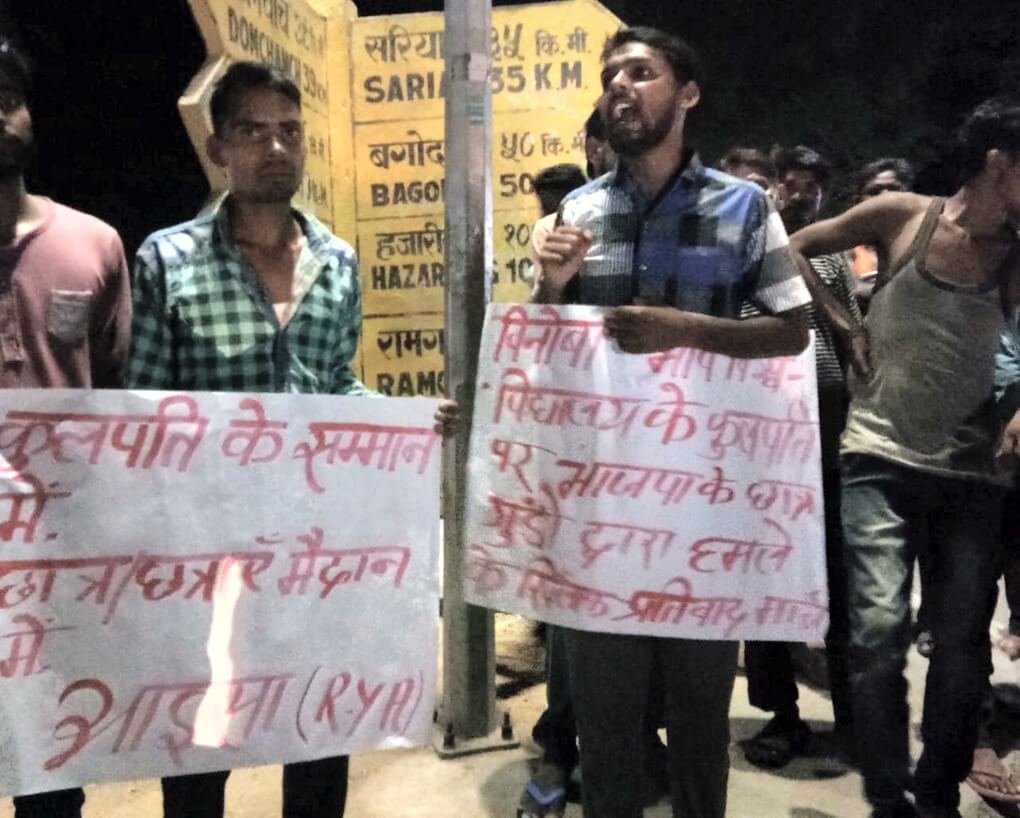 अखिल भारतीय विद्यार्थी परिषद से जुड़े गुंडों द्वारा जाने-माने शिक्षाविद् व अर्थशास्त्री व विनोबा भावे बिश्वविद्यालय के उपकुलपति प्रो. रमेश शरण को आतंकबादी कहकर प्रताड़ित व अपमानित किया गया. एबीवीपी के दर्जन भर लोगों ने उन्हें घंटों बंधक बनाये रखा और उनकी गाड़ी पर कालिख पोत कर उस पर ‘आतंकवादी वीसी’ लिख दिया. गुनाह यह कि वे दीक्षंत समरोह में काला कोट (विरोध का प्रतीक) पहनकर आए थे.