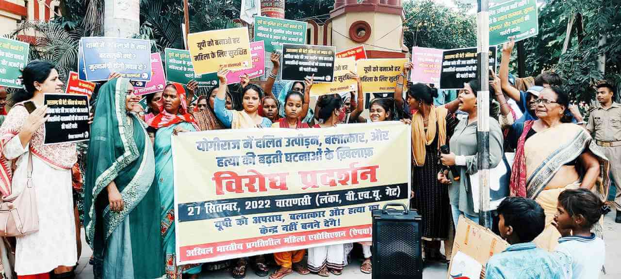 उत्तर प्रदेश में महिला और दलित उत्पीड़न की लगातार बढ़ती घटनाओं के खिलाफ आहूत प्रदेश व्यापी साप्ताहिक विरोध प्रदर्शन (24 से 30 सितंबर तक) के तहत अखिल भारतीय प्रगतिशील महिला एसोसिएशन (ऐपवा) ने कई जिलों में विरोध प्रदर्शन किया.