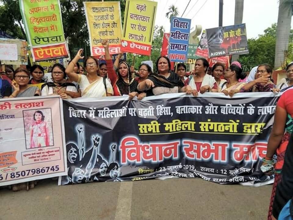 बिहार में महिलाओं पर बढ़ते अत्याचार, गैंग रेप, लड़कियों की ट्रैफिकिंग, एसिड अटैक, माॅब लिंचिंग, बच्चियों के अपहरण आदि घटनाओं में बेतहाशा वृद्धि और इन सवालों पर तथाकथित सुशासन की नीतीश सरकार की चुप्पी के खिलाफ 23 जुलाई को महिला संगठनों ने संयुक्त रूप से बिहार विधानसभा के समक्ष जोरदार प्रदर्शन किया. विभिन्न महिला संगठनों के नेताओं के नेतृत्व में महिलाओं ने पटना रेडियो स्टेशन से फ्रेजर रोड होते हुए जोरदार मार्च निकाला और करीब तीन घंटों तक डाकबंगला चौराहे को जाम रखते हुए वहां सभा आयोजित की.