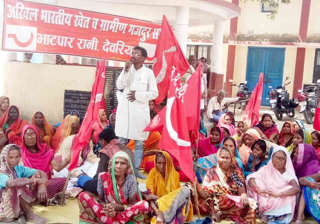 उत्तर प्रदेश खेत मजदूर सभा (खेमस) व भाकपा(माले) कार्यकर्ताओं ने विभिन्न जनसमस्याओं को लेकर देवरिया के बनकटा ब्लाॅक मुख्यालय पर एक दिवसीय धरना-प्रदर्शन कर निम्नलिखित मांगों से सम्बंधित प्रदेश के राज्यपाल को सम्बोधित पत्र बीडीओ को सौंपा.