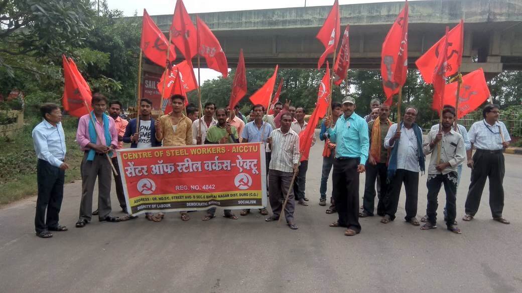 23 अक्टूबर, 2019 की शाम सेंटर आॅफ स्टील वर्कर्स (ऐक्टू) के बैनर तले ठेकाश्रमिकों को सालाना बोनस के अविलंब भुगतान की मांग को लेकर भिलाई इस्पात संयंत्र के आईआर विभाग के सामने प्रदर्शन किया गया और आईआर के महाप्रबंधक श्री सूरज सोनी को ज्ञापन सौंपा गया. सौंपे गए ज्ञापन में बोनस की मांग को लेकर 5 अक्टूबर को सौंपे गए ज्ञापन पर प्रबंधन की आश्वस्ति की ओर पुनः ध्यान आकृष्ट करते हुए कहा गया है कि लगभग 15 दिन बीत जाने के बावज़ूद ठेकेदारों ने श्रमिकों को अब तक सालाना बोनस का भुगतान नहीं किया है. प्रबंधन इसके बाद भी आश्चर्यजनक चुप्पी साधे हुए है जो अत्यंत दुर्भाग्यपूर्ण है. यह साफ तौर पर ठेकेदारों व प्रबंधन के श्रमिक विरोधी रवैये का परिचायक हैं.