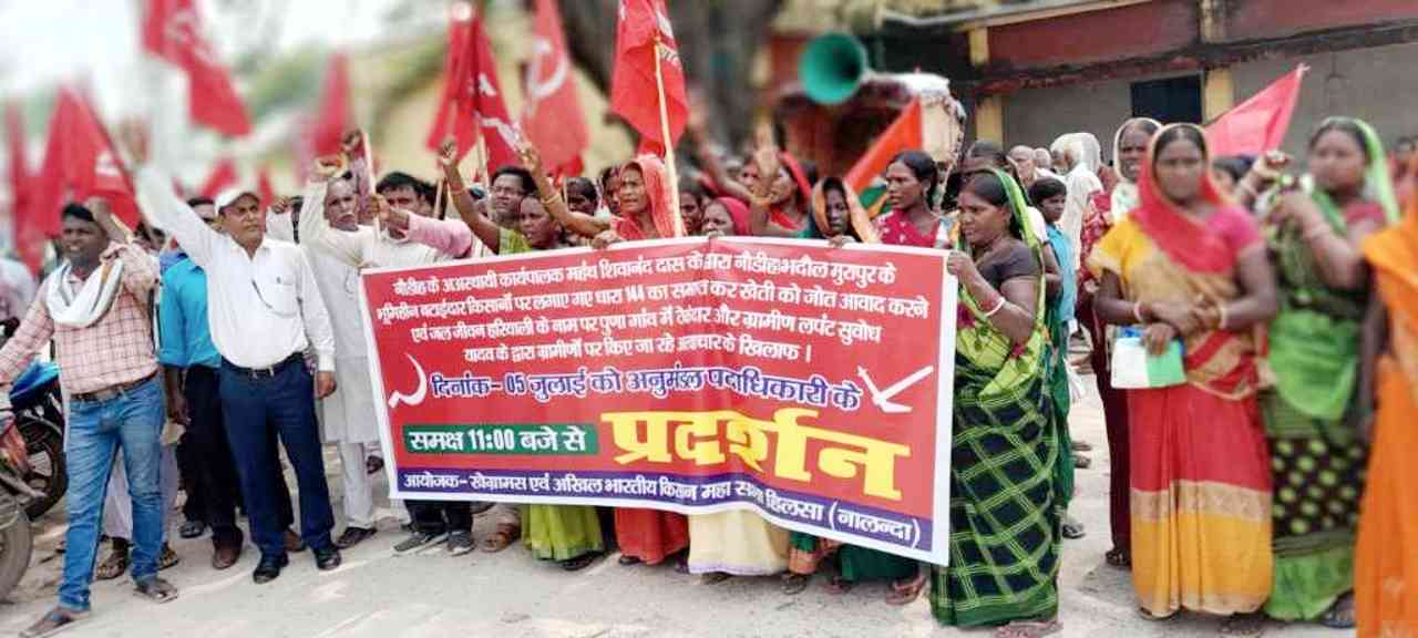 नालंदा जिले के नौडीहा (हिलसा प्रखंड) में अस्थाई महंत शिवानंद दास के द्वारा नौडीहा, भदौल व मुरारपुर गांव के बटाईदारी कर रहे किसानों पर लगी धारा 144 धारा को निरस्त करने और खेत को बटाईदारों के द्वारा आबाद करने तथा जल जीवन हरियाली के नाम पर पुना गांव में ग्रामीण लंपट सुबोध यादव के द्वारा ग्रामीणों पर किए जा रहे अत्याचार के खिलाफ विगत 5 जुलाई 2023 को अनुमंडलाधिकारी, हिलसा के समक्ष विशाल प्रदर्शन किया गया. प्रदर्शन में सैकड़ों की संख्या में महिला-पुरूष मजदूर और किसान शामिल हुए. प्रदर्शन बुढ़वा महादेव से शुरू होकर सिनेमा मोड़ व जोगीपुर मोड़ होते हुए रेलबे क्राॅसिंग को पार कर अनुमंडल पदाधिकारी के पास पहुंचा.