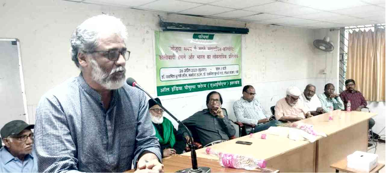 परिचर्चा की अध्यक्षता वरिष्ठ आदिवासी चिंतक वाल्टर कंलडुलना एवं साहित्यिक सैयद गुलफाम अशरफी ने की. मंच संचालन व विषय प्रवेश एआइपीएफ के नदीम खान और जेवियर कुजूर ने किया.