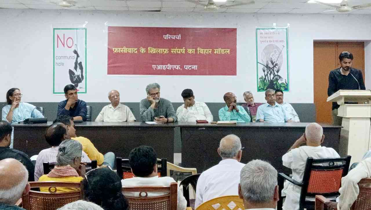 पटना के आइएमए हाॅल में एआइपीएफ, पटना चैप्टर का कन्वेंशन विगत 4 अप्रैल को आयोजित हुआ. इस मौके पर ‘फासीवाद के खिलाफ संघर्ष का बिहार माॅडल’ विषय पर एक परिचर्चा का भी आयोजन किया गया, जिसमें भाकपा(माले) महासचिव का. दीपंकर भट्टाचार्य, सामाजिक कार्यकर्ता सरफराज, एएन सिन्हा इंस्टीच्यूट के डाॅ. विद्यार्थी विकास और ऐपवा की महासचिव मीना तिवारी ने बतौर वक्ता हिस्सा लिया. परिचर्चा की अध्यक्षता पटना के जाने-माने शिक्षाविद् गालिब और संचालन एआइपीएफ के संयोजक कमलेश शर्मा ने की.