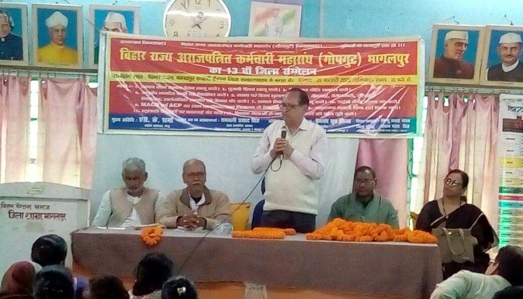 बिहार राज्य अराजपत्रित कर्मचारी महासंघ (गोपगुट) भागलपुर का 13वां जिला सम्मेलन 29 फरवरी को स्थानीय पेंशनर समाज भवन में सम्पन्न हुआ. झंडोत्तोलन व शाहीद वेदी पर पुष्पांजलि से सम्मेलन की शुरुआत हुई. महासंघ के सम्मानित राज्य अध्यक्ष का. रामबली प्रसाद ने खुले सत्रा और मुख्य सलाहकार अरविंद प्रसाद सिंह का ने प्रतिनिधि सत्र का उदघाटन किया. सम्मेलन को मुख्य अतिथि एक्टू के राष्ट्रीय उपाध्यक्ष एसके शर्मा, भाकपा(माले) के जिला सचिव विंदेश्वरी मंडल ने आदि ने सम्बोधित किया. सम्मेलन में 22 कर्मचारी संगठनों के करीब 100 प्रतिनिधि शामिल हुए.