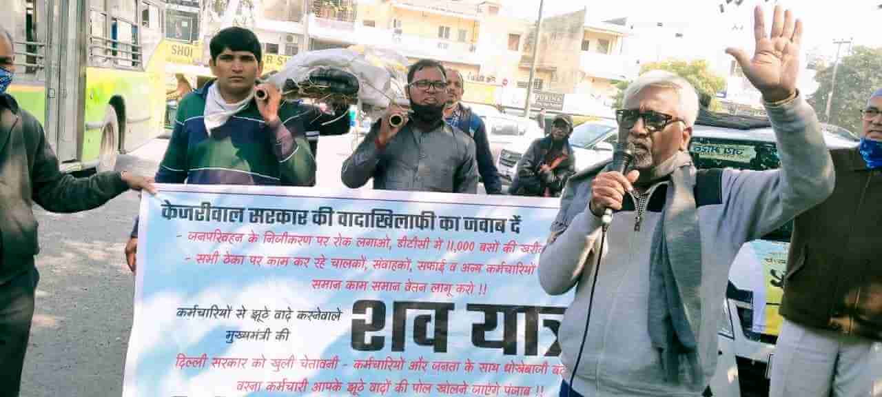 युनिटी सेंटर ने कहा कि केजरीवाल सरकार ने तमाम ठेका श्रमिकों को नियमित करने जैसे अपने चुनावी वादों को पूरा करने के लिए कोई कदम नहीं उठाया, और न तो वह मजदूरों की अन्य मांगों के प्रति कोई ध्यान दे रही है. इससे विक्षुब्ध होकर मजदूरों ने मुख्य मंत्री की ‘शव यात्रा’ निकाल कर अपने गुस्से का इजहार किया.