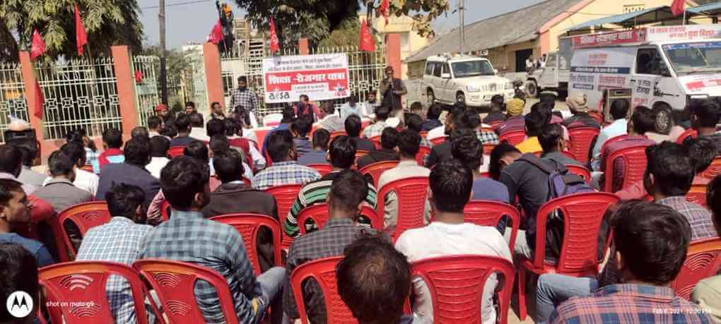 12 फरवरी 2021 को शिक्षा-रोजगार यात्रा पूर्णिया पहुंची. वहां आयोजित सभाओं को संबोधित करते हुए आइसा के बिहार प्रदेश अध्यक्ष मोख्तार, जवाहरलाल नेहरू विश्वविद्यालय छात्रा संघ के महासचिव सतीशचंद्र यादव, आइसा नेता मुकेश प्रभाकर ने कहा कि बिहार में लगभग साढ़े चार लाख सरकारी पद खाली हैं और 5 लाख से ज्यादा नए सरकारी पद सृजित किया जा सकते हैं. आज बिहार के विश्वविद्यालयों में शिक्षकों-कर्मचारियों के 80 फीसदी से ज्यादा पद खाली हैं. लेकिन, सरकार इन खाली पदों पर बहाली की दिशा कोई कदम नही उठा रही है, इस यात्रा के माध्यम से हम बिहार की भाजपा-जदयू सरकार से यह मांग करते हैं कि वह 19 लाख सरकारी नौकरियां देने के अपने वायदे को पूरा करे.