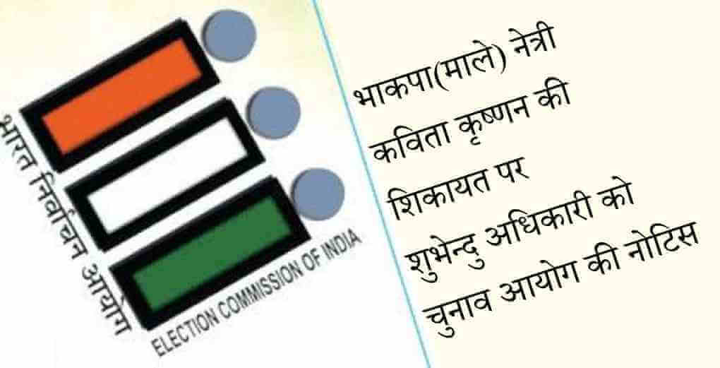 सीपीआइ(एमएल) नेत्री कविता कृष्णन की शिकायत पर निर्वाचन आयोग ने भाजपा प्रत्याशी शुभेंदु अधिकारी को उनके सांप्रदायिक बयानबाजी पर नोटिस जारी करके उन्हें 24 घंटे के भीतर जवाब देने को कहा है.