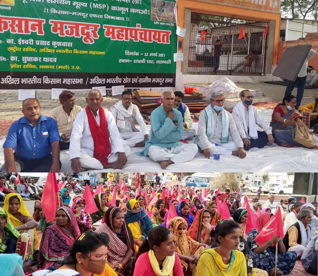 जन विरोधी कृषि कानूनों को वापस लेने और न्यूनतम समर्थन मूल्य के लिए कानून बनाने की मांग को लेकर विगत 22 मार्च 2021 को बनारस स्थित शास्त्राी घाट, कचहरी पर एक किसान मजदूर महापंचायत आयोजित की गई. इसका आयोजन अखिल भारतीय किसान महासभा एवं अखिल भारतीय खेत एवं ग्रामीण मजदूर सभा द्वारा किया गया.